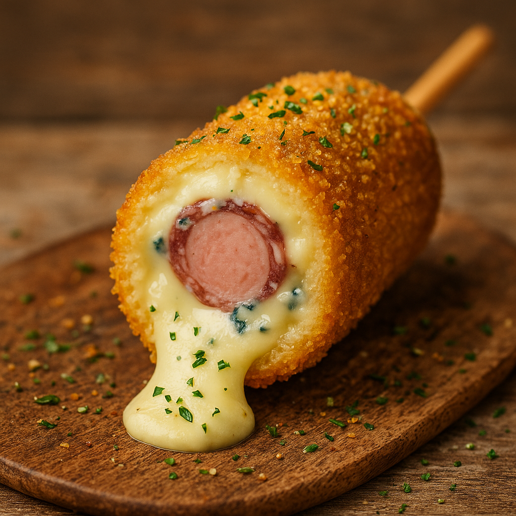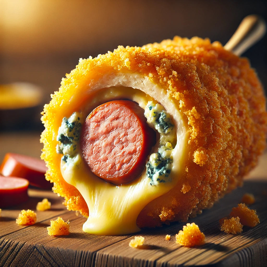 Saucisse, Bleu d'Auvergne, Saint-Nectaire, Saucisson d'Auvergne et panure panko.